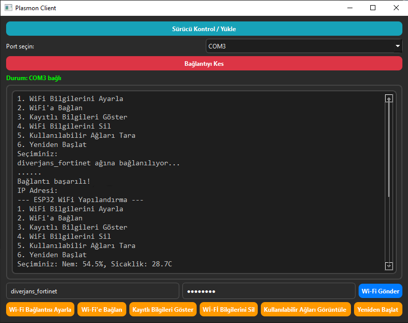 Cihaz ekranında Sıcaklık ve Nem verileri geliyorsa, bağlantınız başarıyla oluşturulmuştur.